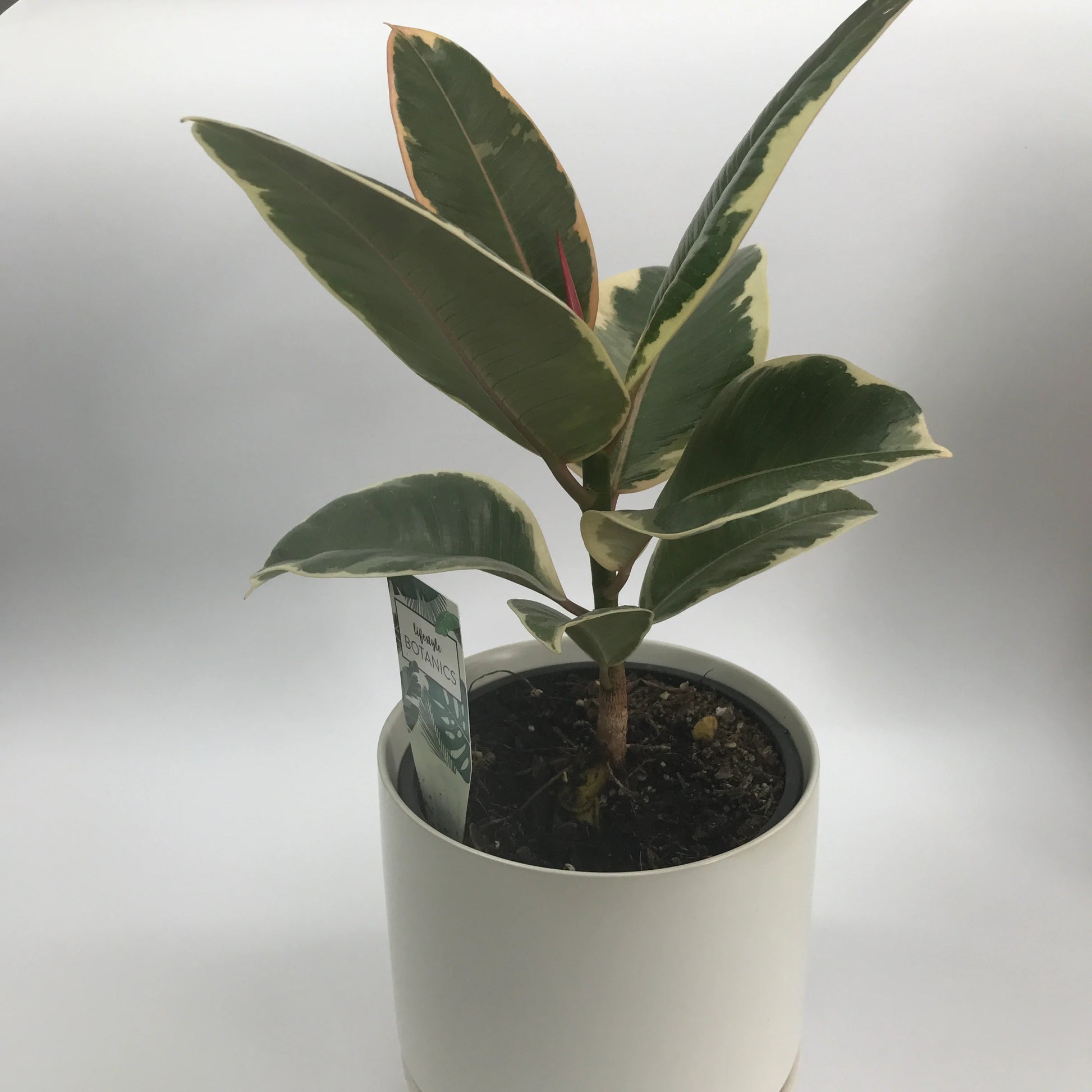 A glossy-leafed tree used as a foliage accent with oval shaped leaves. Tineke has creamy yellow/white and green variegated coloured leaves. Thrives as an indoor plant, growing to 3m. Grow in a bright area. Be cautious with how you water and how often, and keep a little on the drier side in the winter. Feed houseplants once a month with a liquid fertiliser.